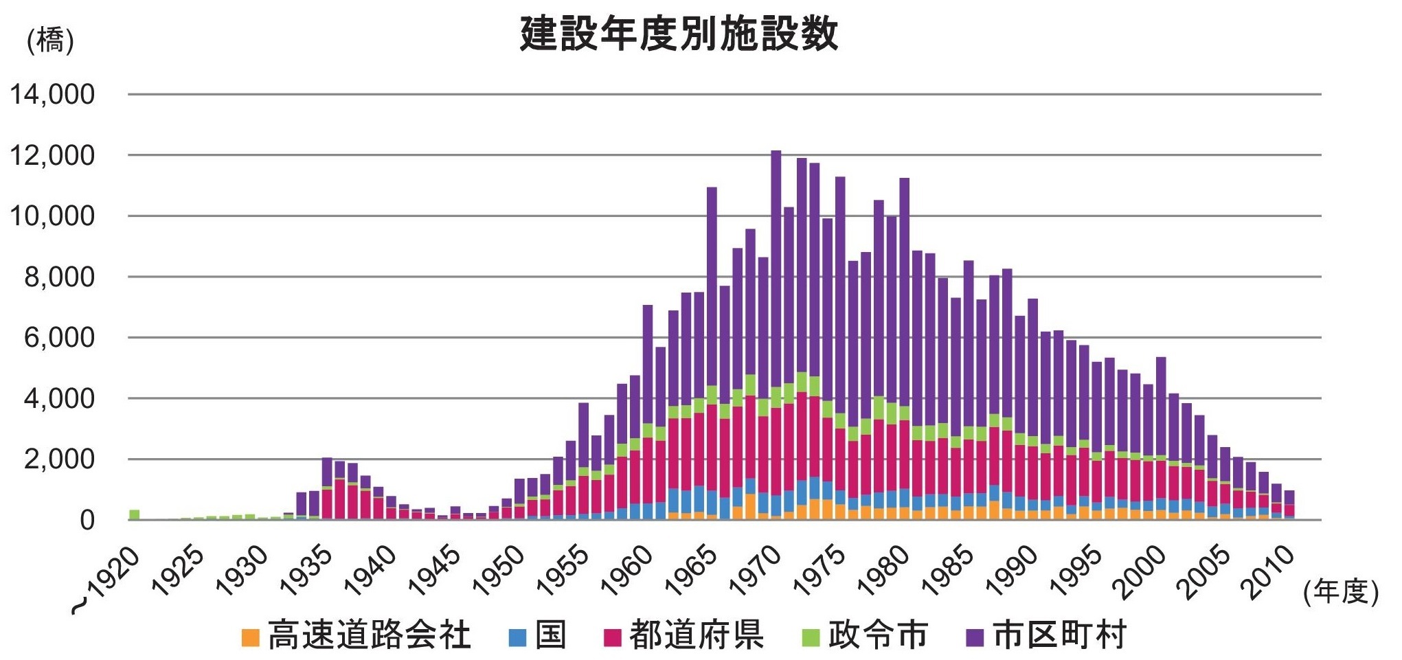 (※この他 古い橋梁など記録が確認できない建設年度不明橋梁が約30万橋ある)
